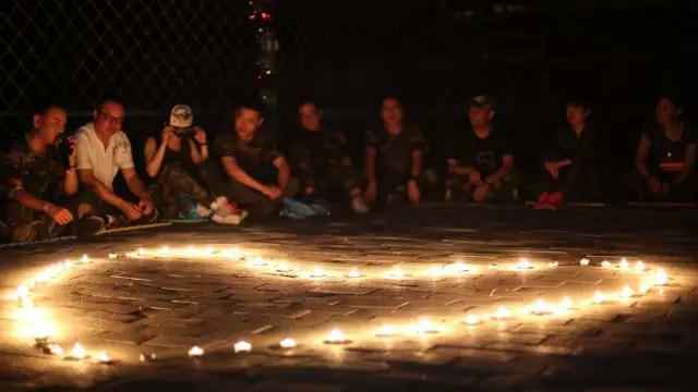 歌声欢呼声不绝于耳。大家欢乐的跳着竹竿舞,啤酒、烧烤、音乐和舞蹈交织在一起,