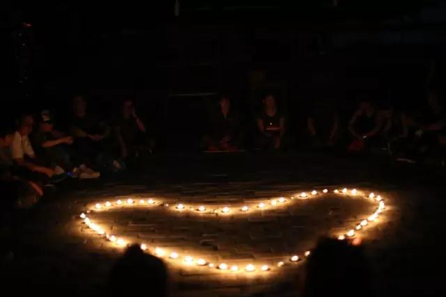 一场聆听的艺术盛会开始了,地面上一对对蜡烛倾泄着光华,同学们相互凝望像是诉说着圆满,